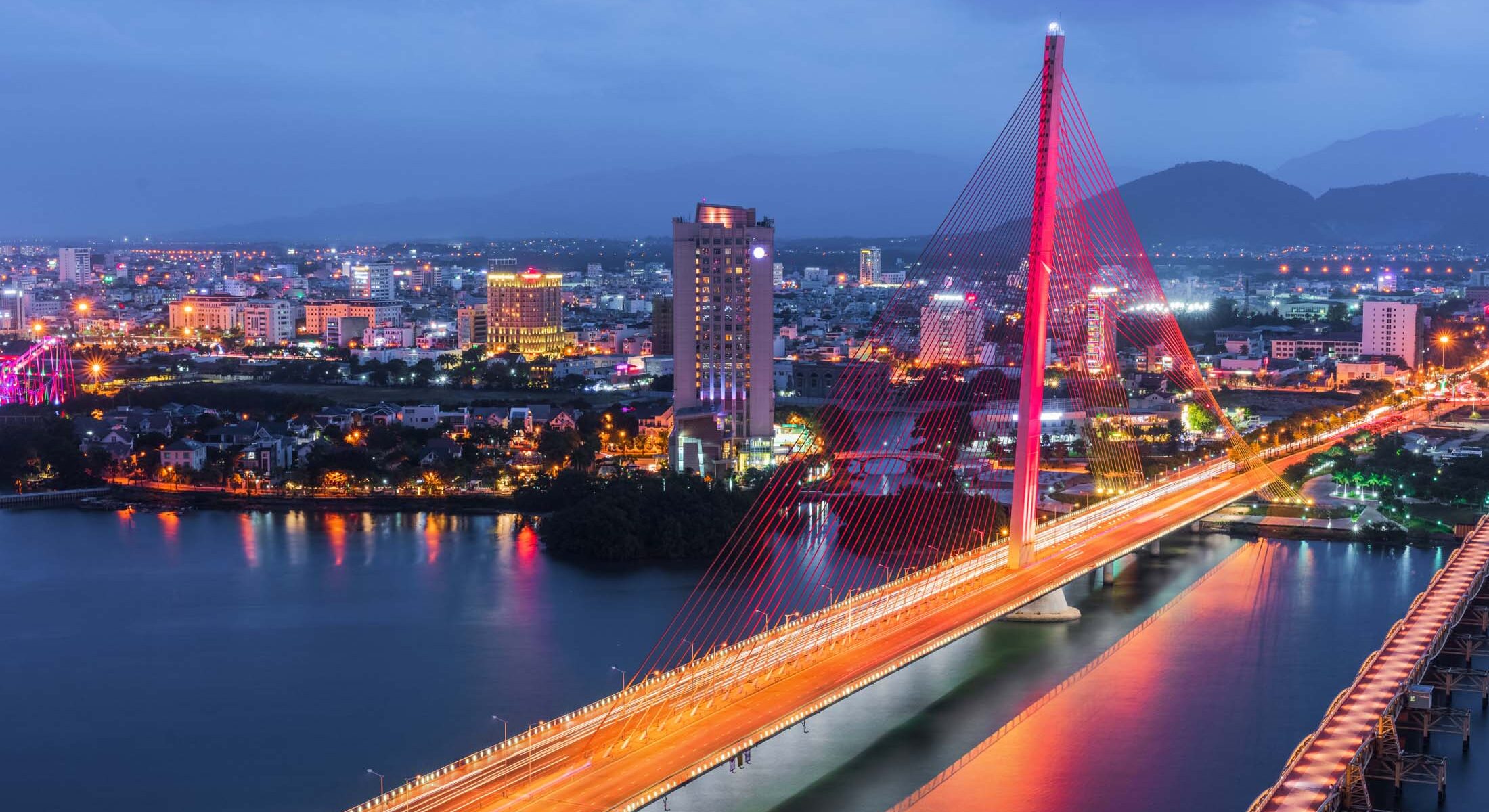 The famous Vietnam Dragon Bridge is located on the beautiful Han River of Da Nang. Aside from astonishing architecture, this bridge is also well known for its exciting water and fire performances.