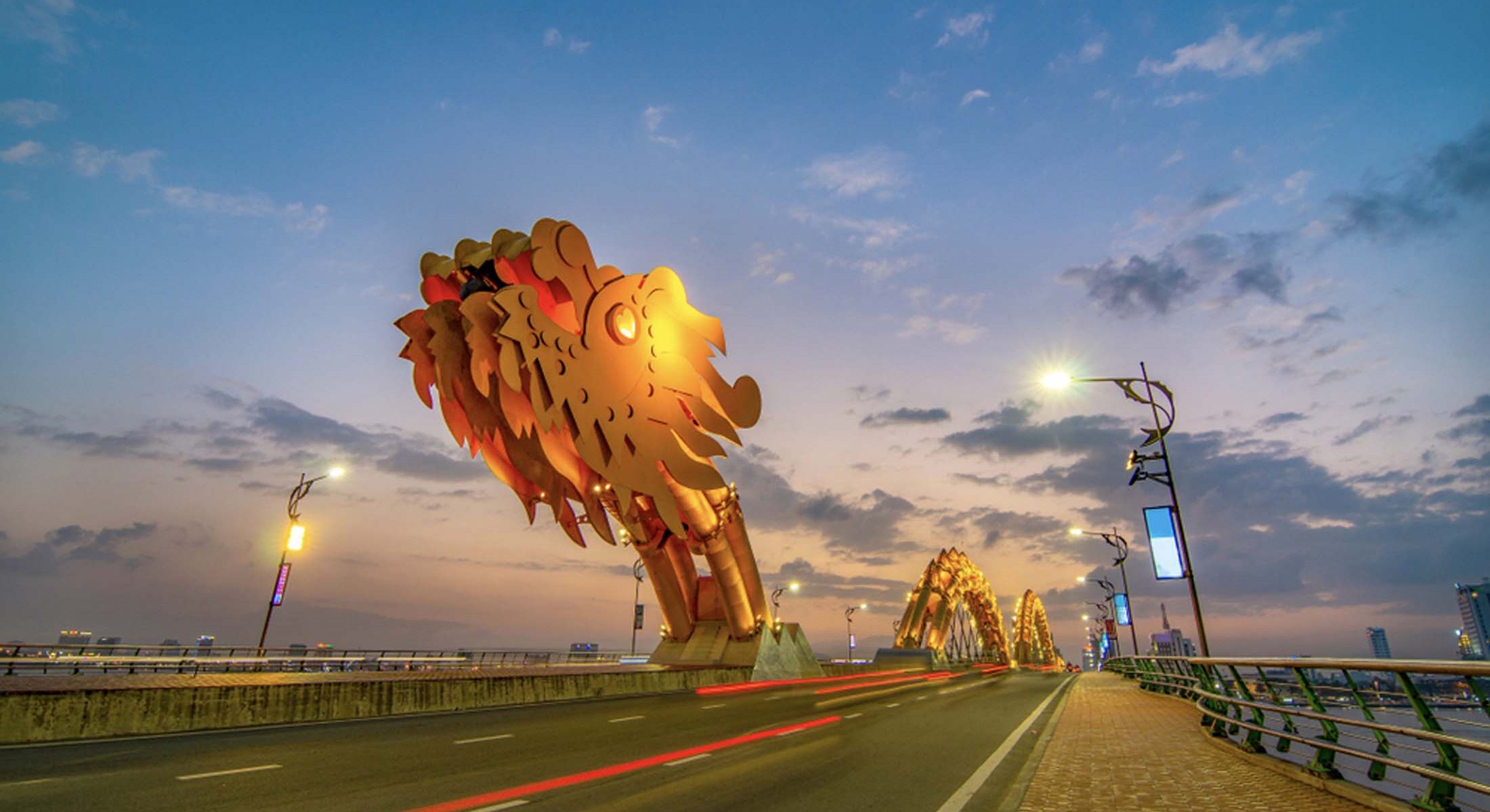 From here, travelers can also admire a range of other unique architectural features, such as the Dragon Bridge and the Love Bridge. When the sun goes down, the city transforms into a brilliant display of street lights from high-rise buildings, music events, and more. This creates an energetic modern night scene, perfect for those who wish to explore the Da Nang Vietnam bridge