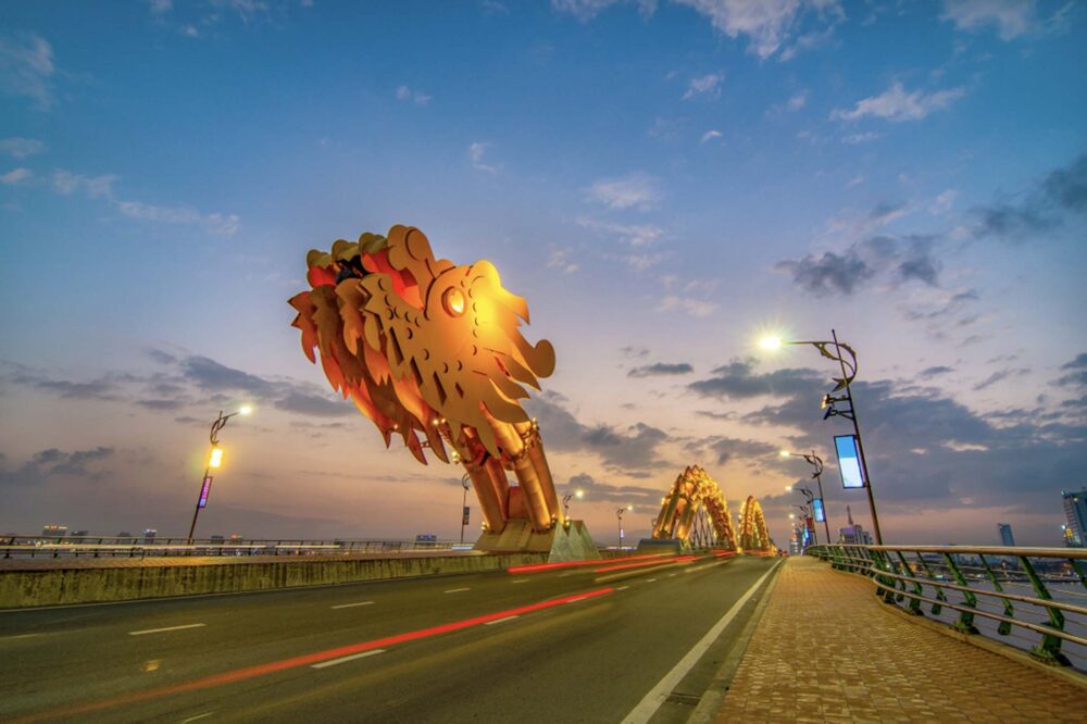 Da Nang, Vietnam: Dragon bridge at sunset which is one of the most beautiful bridge in the world.