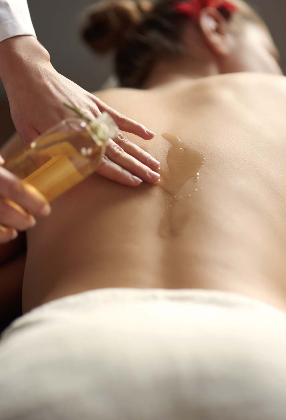 Back treatment with massage oil